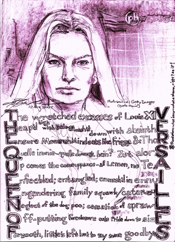As for the acrostic poetry, it is a little less Lynchian, and it cleaves to almost-exact iambic septameter, and exactness of alphas/spaces per line. There is a missing word. Careful readers will be able to find what it is and where it should go. A reader perhaps more clever than I am might know how to fix the line to render the content and preserve iambic septameter.