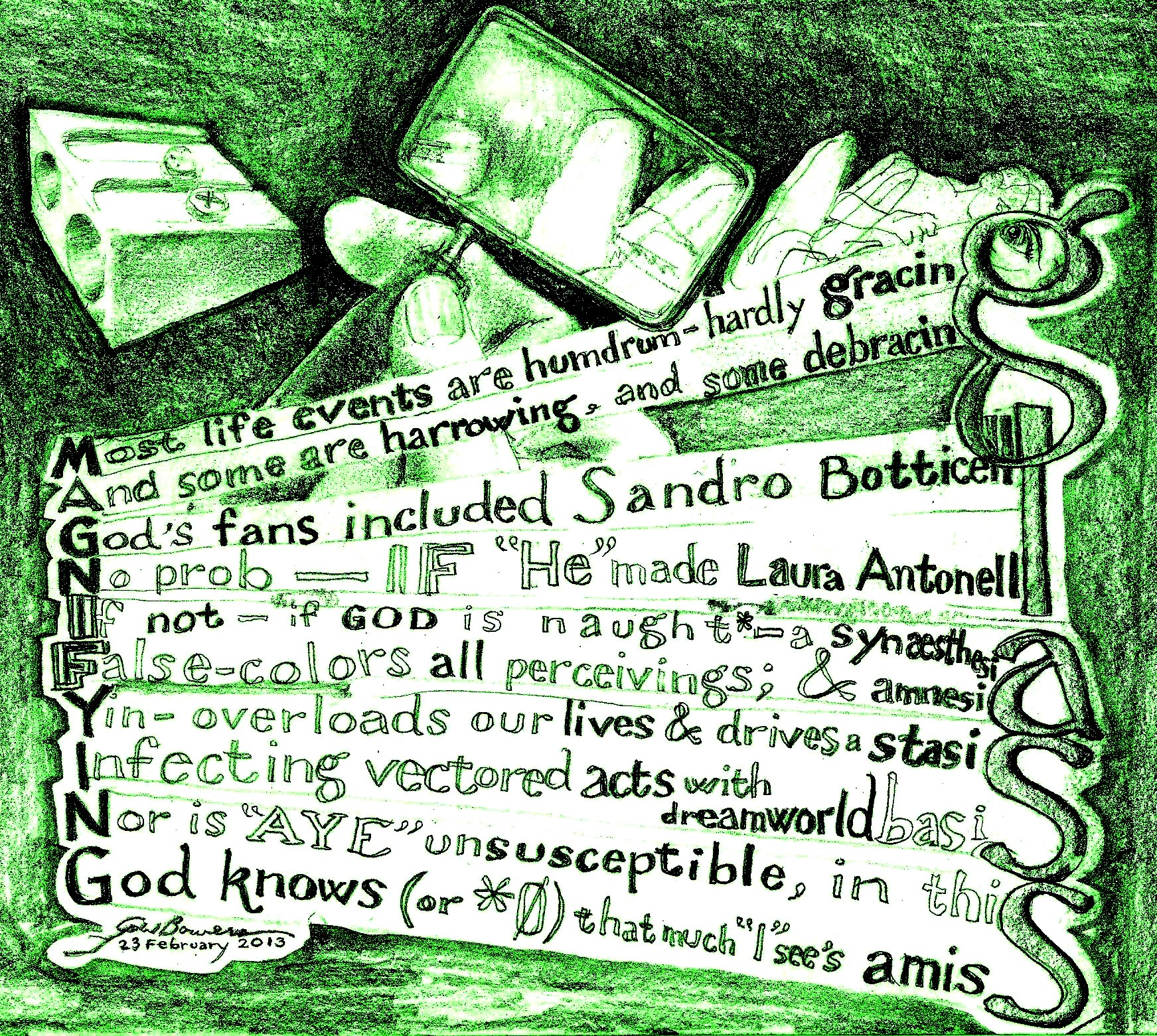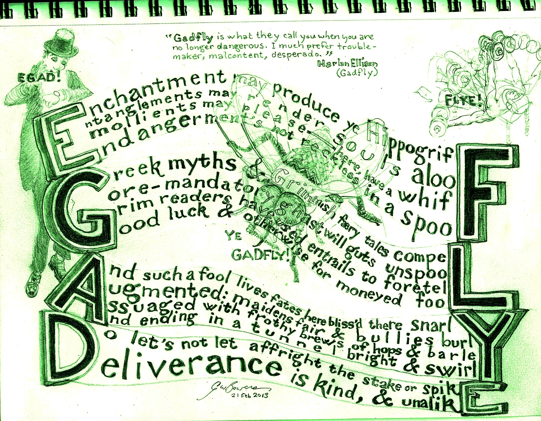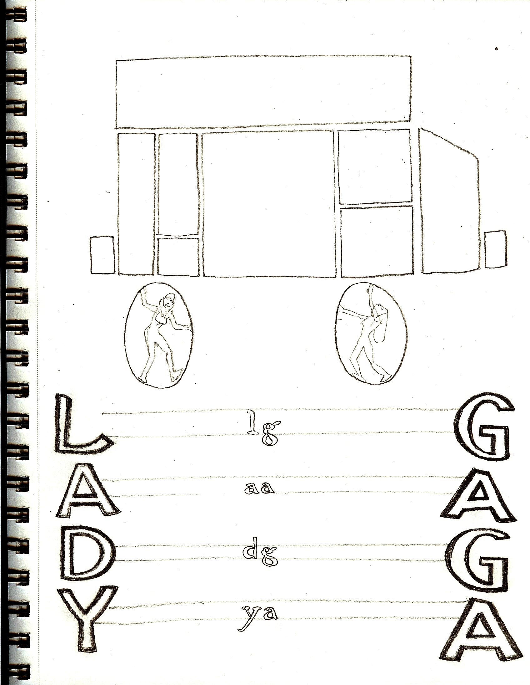 I thought “Lady Gaga” would be an ideal starter kit for a fledgling acrostic poet. Alas, no one responded. Perhaps the ice-cream-truck-looking panel array or the internal lower-case additional acrostic elements put prospective acrosticists off. And who has the time nowadays?