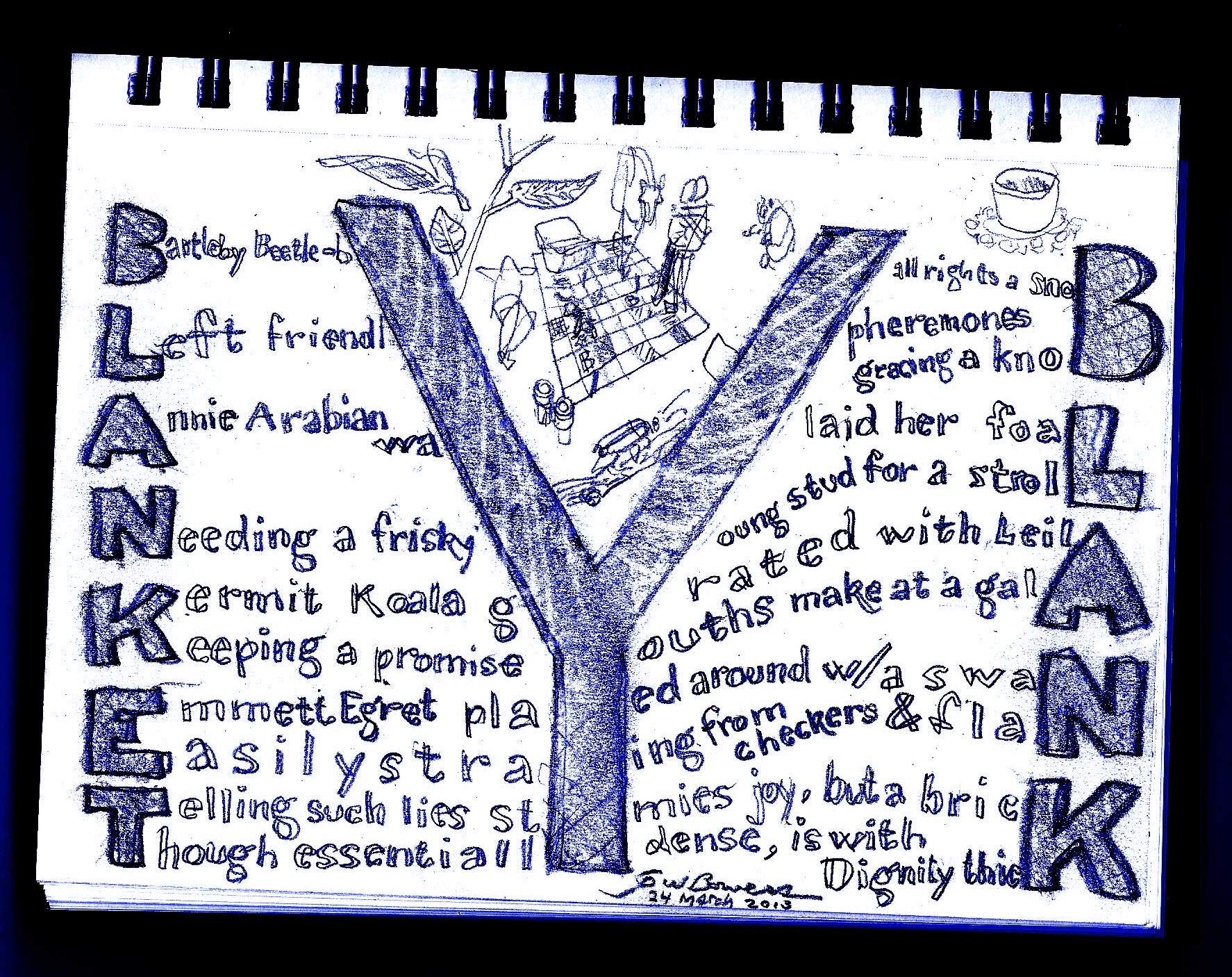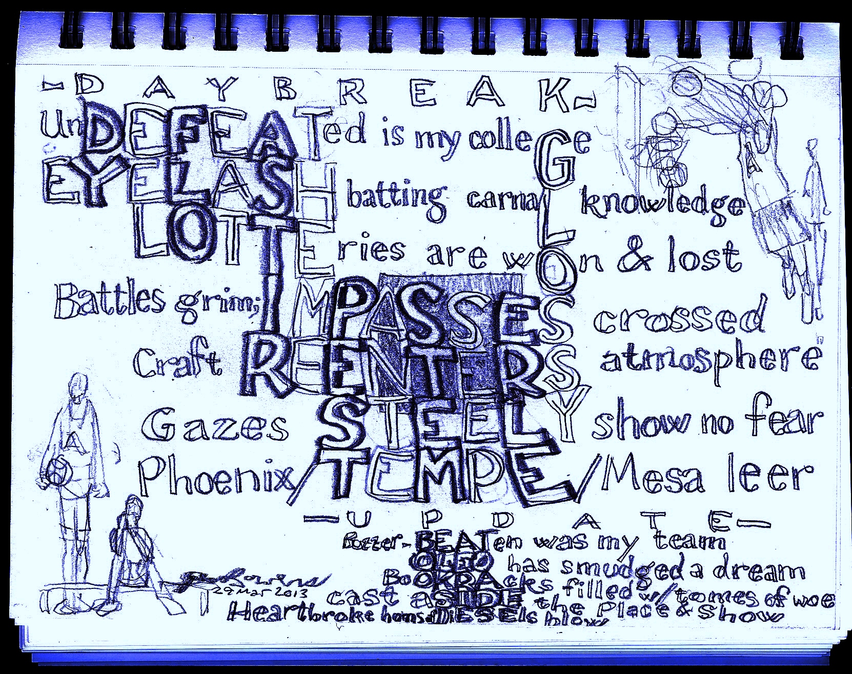 But at least the tragedy was fodder for a journal page, and a deeply allegorical one at that. Even the acrosticization reflects March Madness in its wild interlocking of names and conditions.