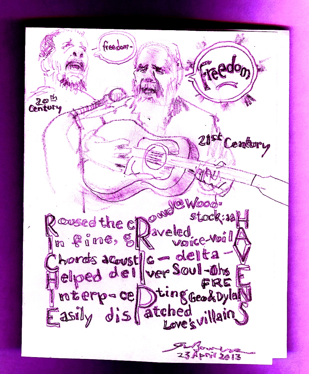 In the movie I’M NOT THERE, Mr. Havens has a wonderful cameo, on a front porch, jamming Dylan with two buddies. It’s a great part of that great movie.