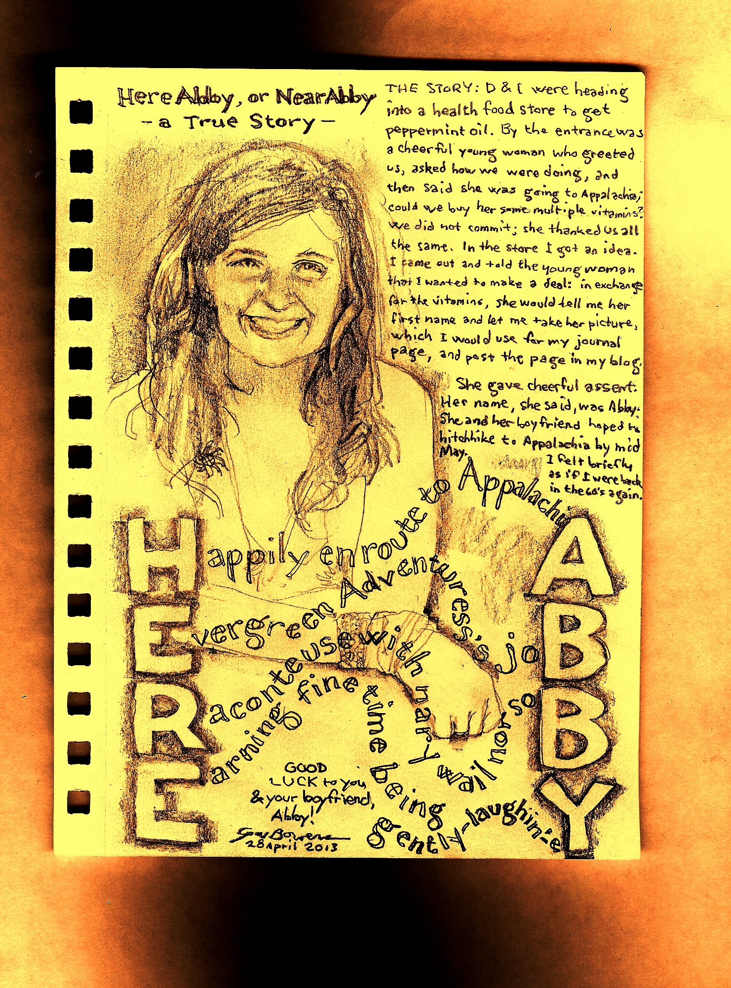 Yesterday I worked the two-to-six shift at the Village Gallery, the artist’s cooperative where my ceramic work is displayed. (All members are required to put in two shifts per month.) It was a slow afternoon, and though I was working alone, I had a lot of time on my hands. With Willie Nelson playing on the CD I made this page: