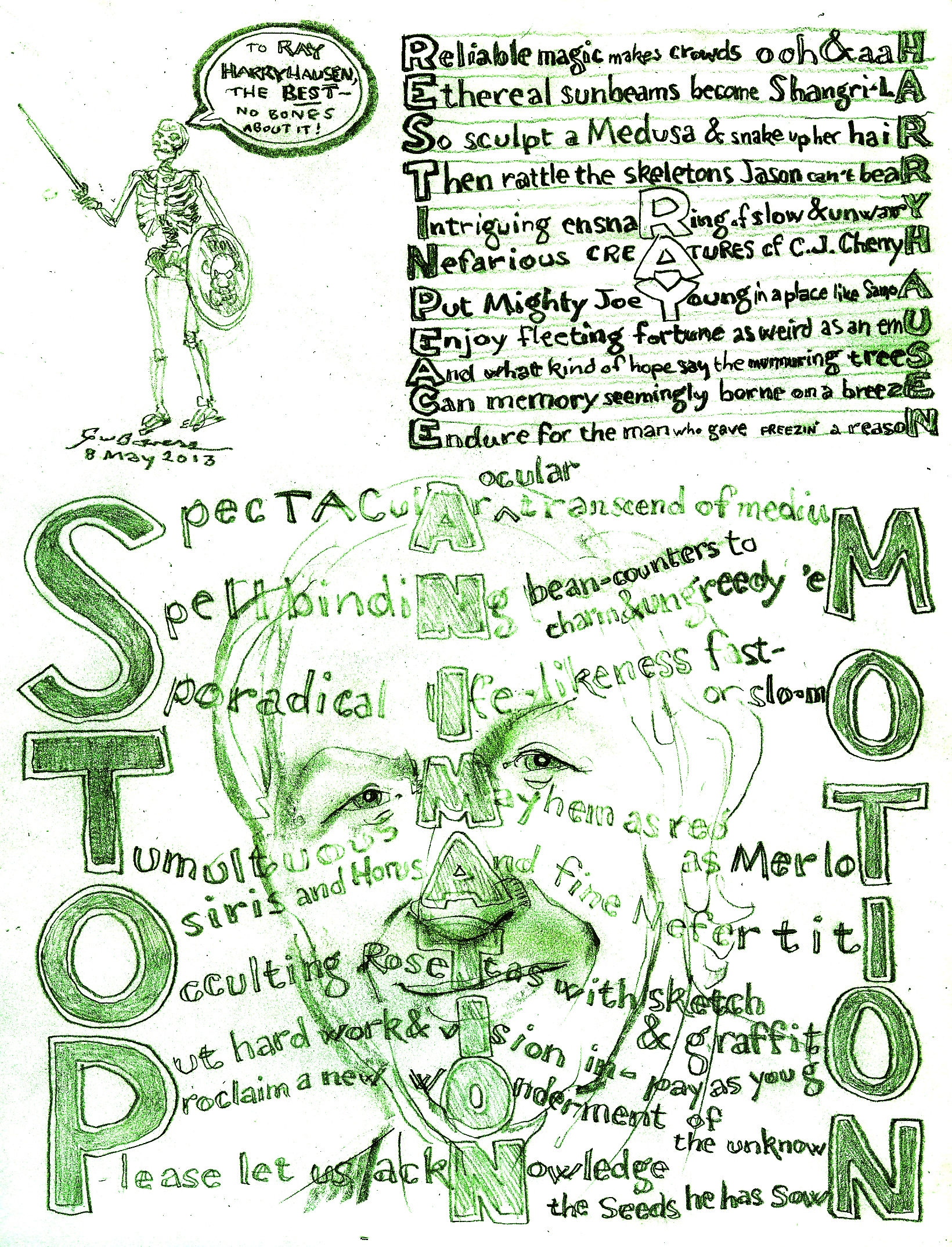 Here are the words to the “Rest In Peace Ray Harryhausen” acrostic: