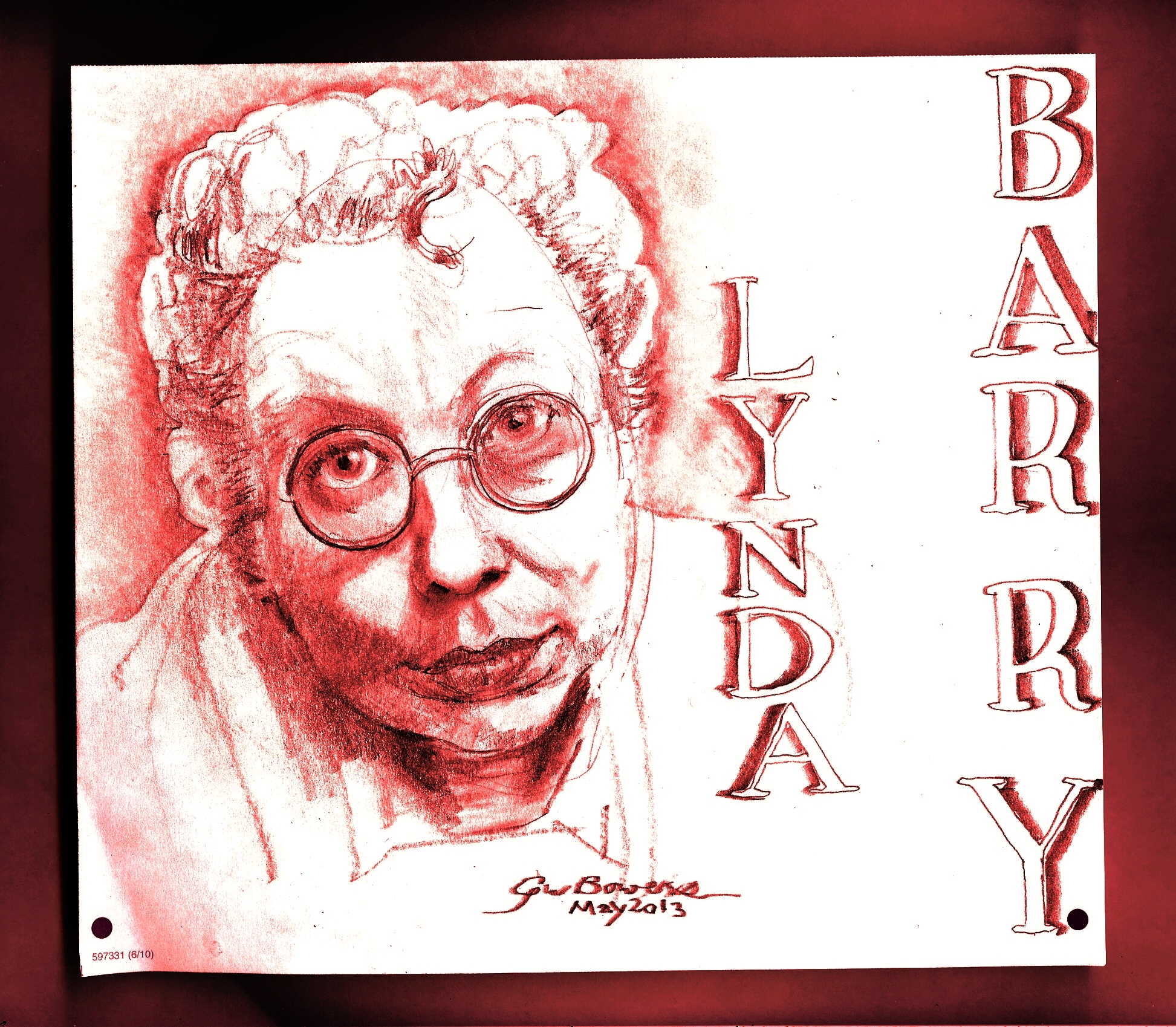 Lynda Barry is a hyperaware, grit-dealing, truth-wielding patron saint of misfits. I have been an adoring fan of hers for over 15 years. (So have Tom Robbins and Matt Groening.) I hope to fill the right side of this work in progress with a poem worthy of her, but that must wait until I finish CRUDDY, her illustrated novel. I started the book when my daughter was eleven or twelve; she’s 23 now. The book slipped through my fingers, back to its owner, Marty K, way back then; he has reloaned it to me. Stay tuned for completion, followed by completion.
