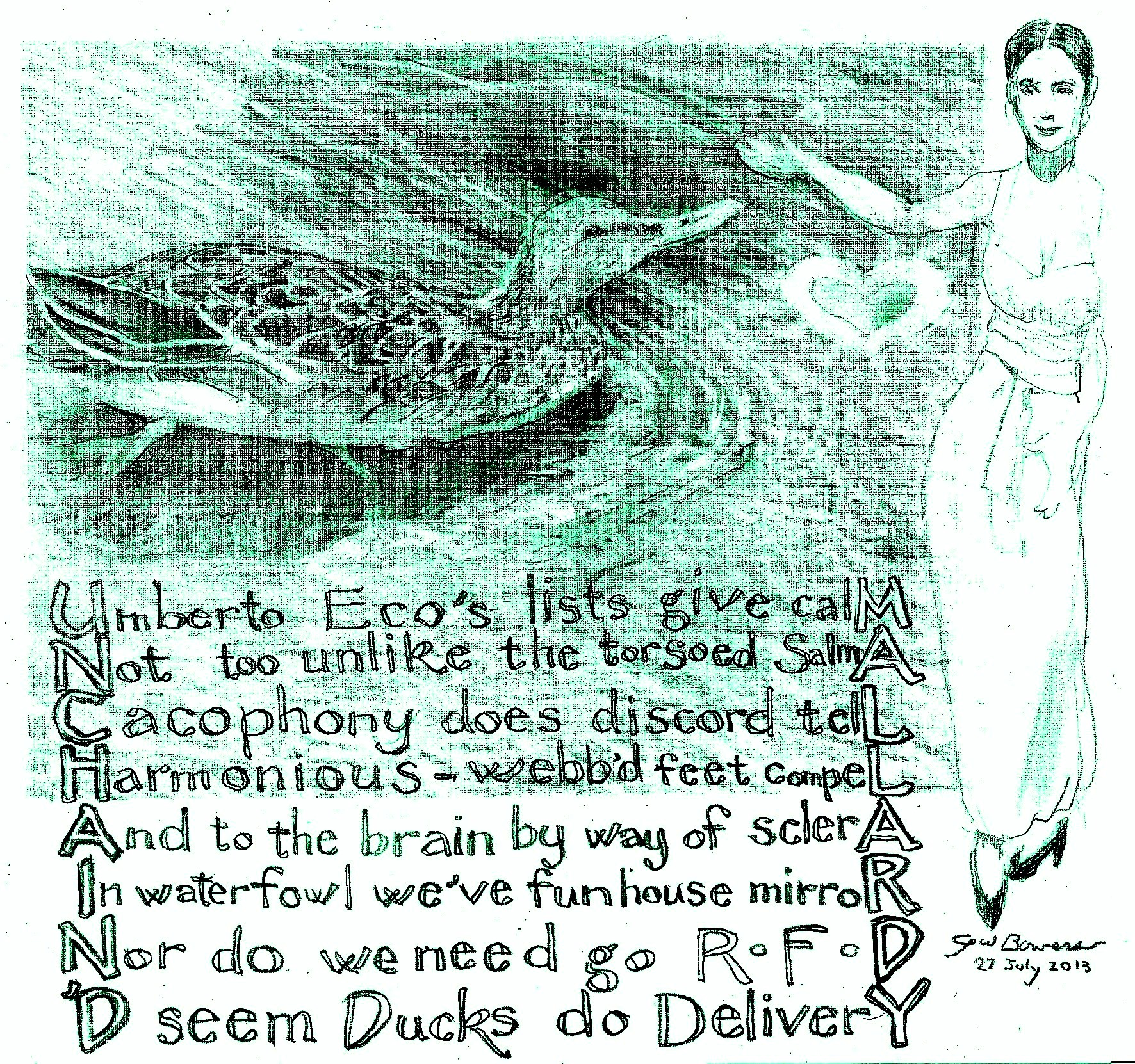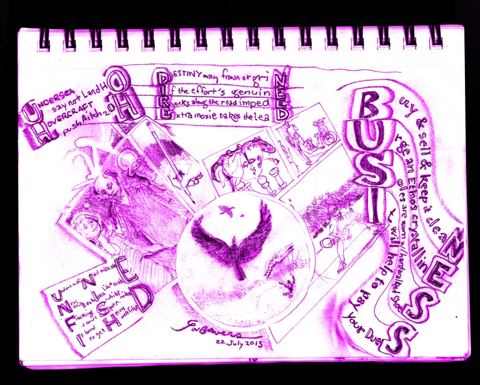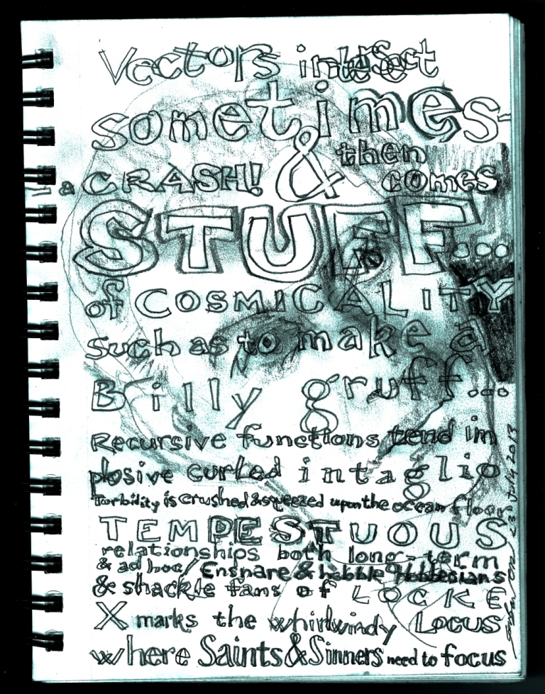 Line One is a riff on Omar Khayyam’s “Come, fill the Cup, and in the light of Spring…” Line Four is an oblique hommage to the movie version of Cloud Atlas and its gender-reassigned co-creator Lana (formerly Larry) Wachowski. Line Six has, I trust, the worst-yet pun based on Raskolnikov.