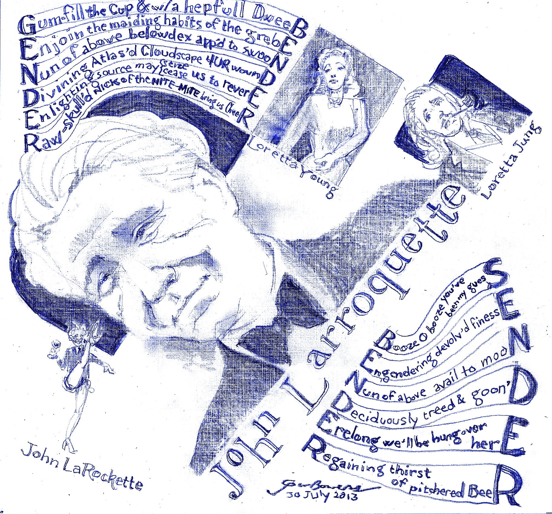 So there were Loretta Young and John Larroquette, minding their own business, when along I come and transvestize them, because I noticed that slight changes to their last names would do the trick. I hope they and/or their spirits mind less about that than I did when it was done to me. (A female so-called friend of mine put my head on a “princess” body as an action figure in a video game. I have forgiven her, but there was a rift. Guess I’m not, or was not, all that secure in my masculinity…?)