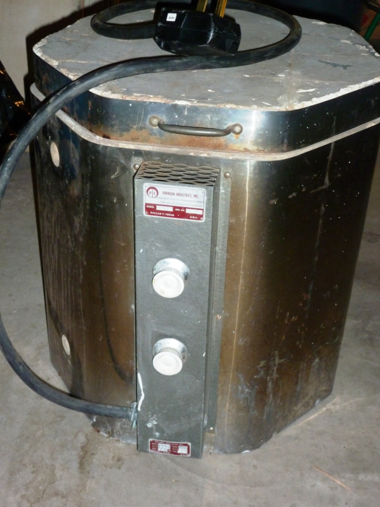 I should also mention that another step to getting the kiln operational was to get an outlet to match its four-pronged plug. The outlet was installed by Greg Huntington, my girlfriend Denise’s brother, licensed contractor and prince of a fellow, who accepted an inexpensive breakfast at a local restaurant as full and final payment for this task. If you need a remodel, a floor installation, or a home built from scratch, Greg is your man.