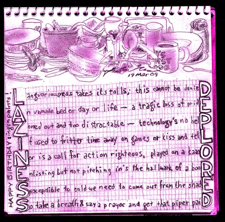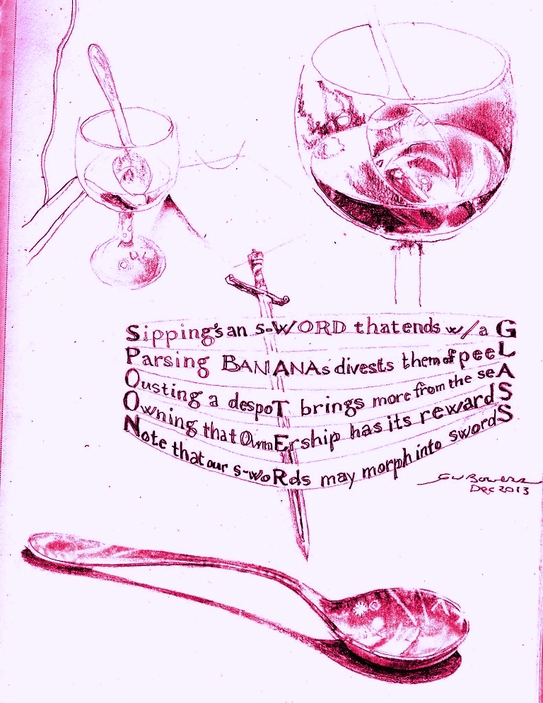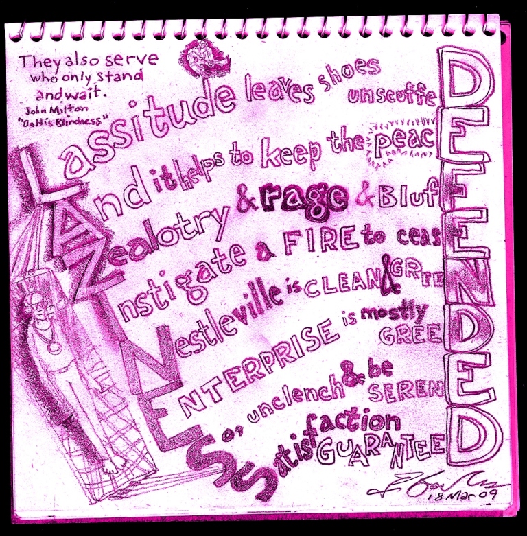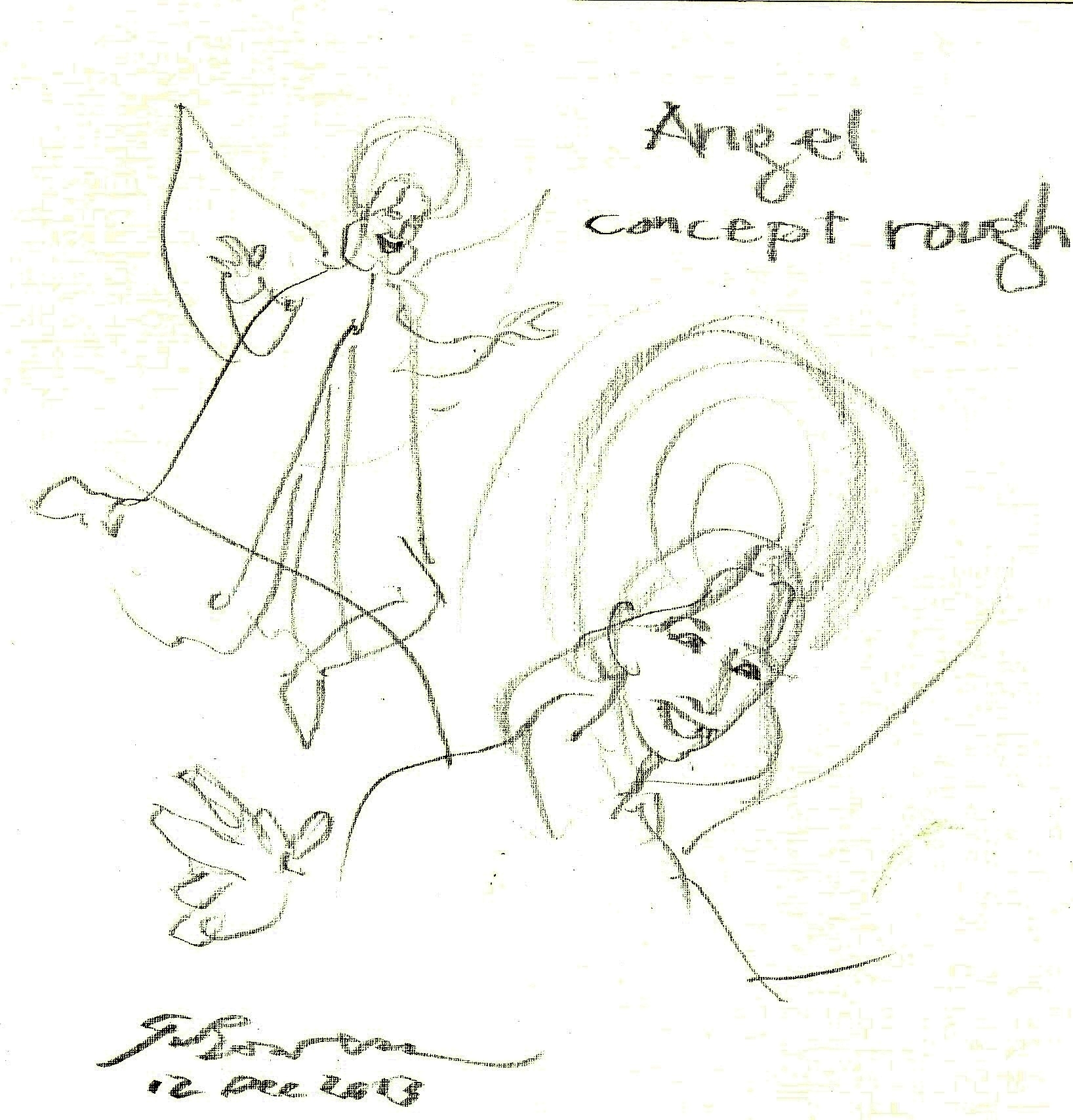 3. The illustrative sketch was done on a piece of cut-up scratch paper during my shift at the Village Gallery today. That is why there is faded reversed lettering on the image; it is from the other side of the paper.