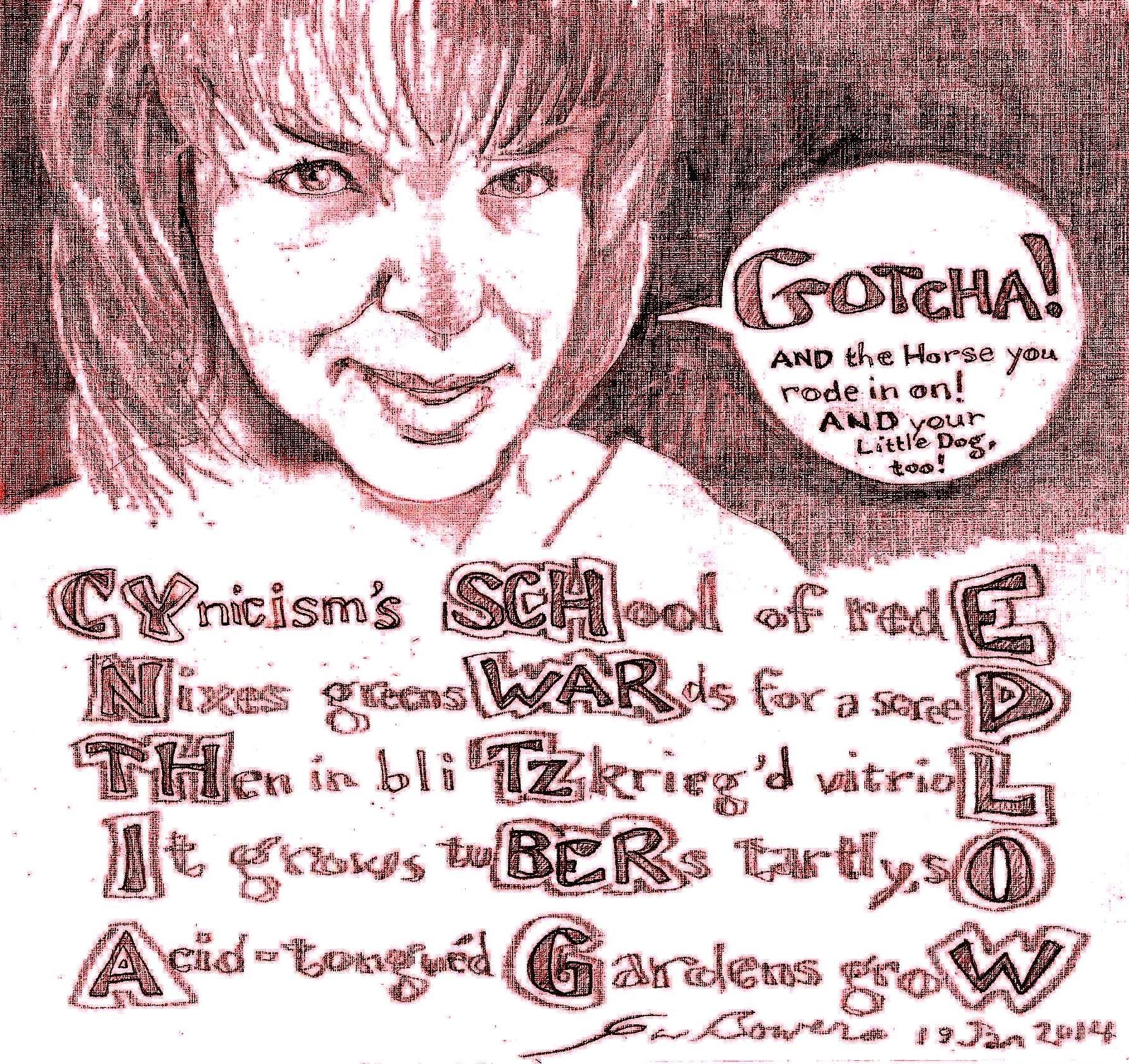 This one has really barely begun. Meanwhile, I and Denise have acquired a cat, so at minimum the cat will change. And some explanation will be needed for the Lya portion of the acrostic/pun. Hint: A SONG FOR LYA by George R. R. Martin.