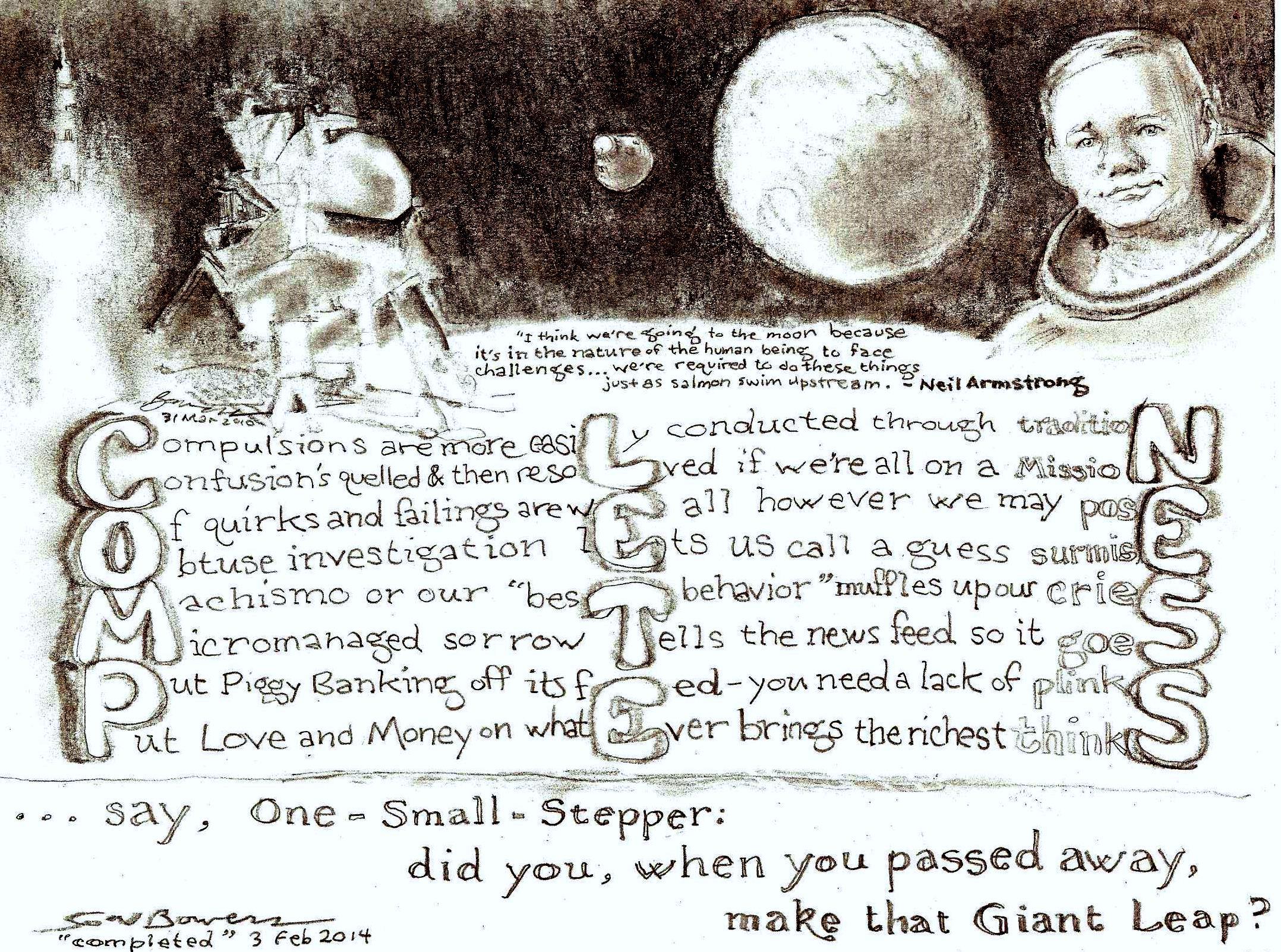 On the last of January I made the acquaintance of a force of nature in the disguise of a little old lady. She allows me to post this blog only on the condition that I use no names nor photos, though she allowed me to take a camera-picture of her for my photo source for my drawing. She says it’s all right to use the first initial of her and her friend’s names, so she shall be A___, and her friend, G___.