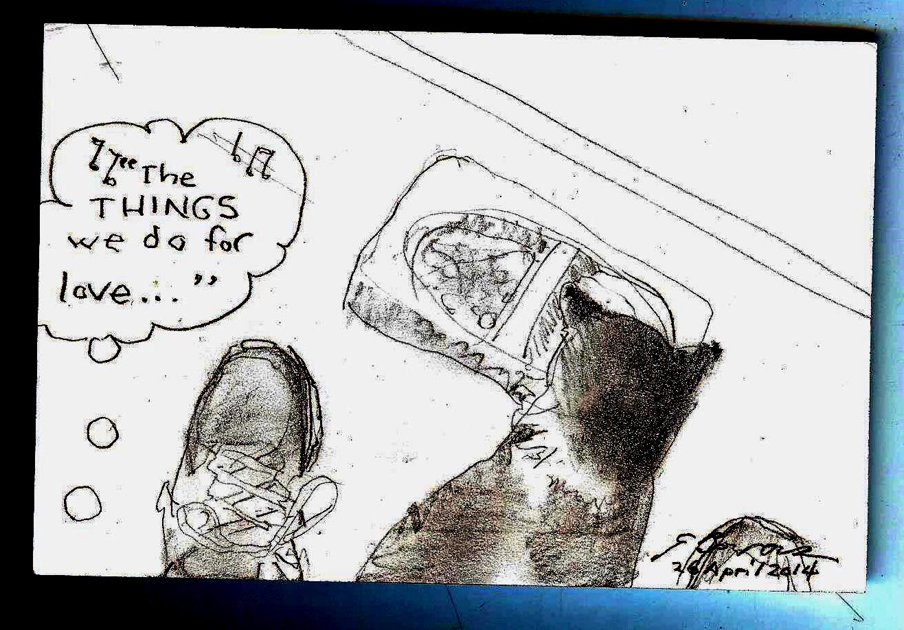 So this decades-later, much-simpler drawing of mine is “Spoon Sonata with Crossword Counterpoint.” I got lucky with the alliteration. [smiles]