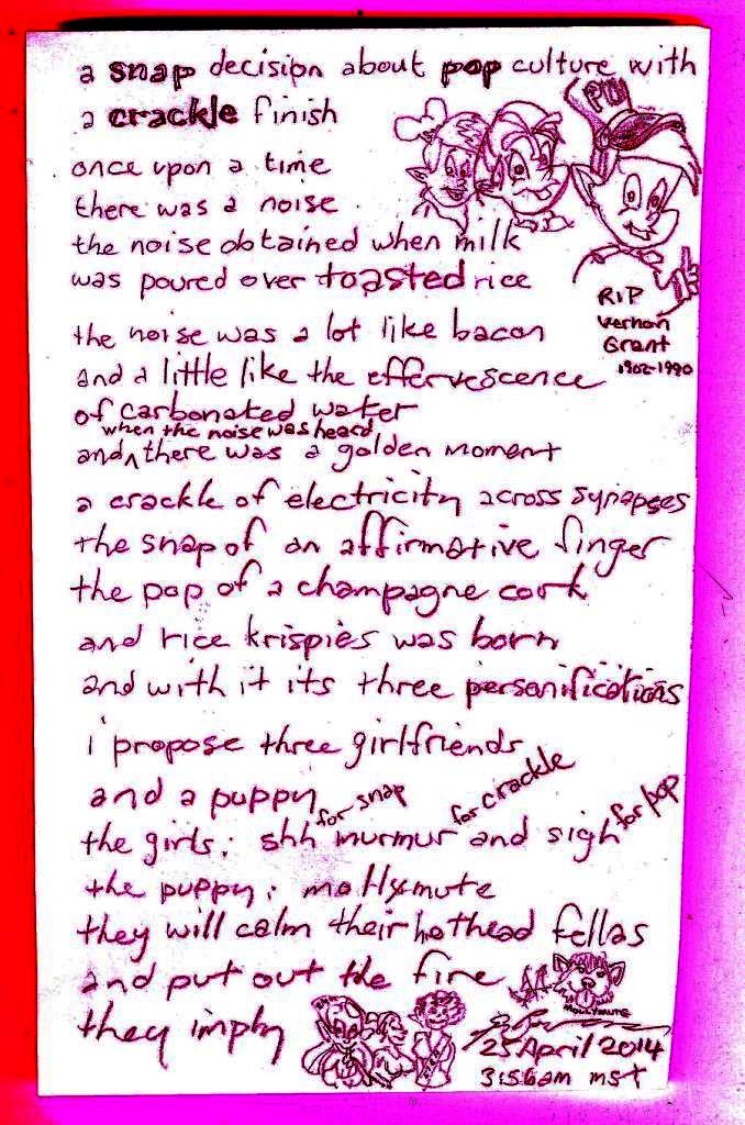 With this poem the requirement of a poem per day for National Poetry Writing Month will be fulfilled. Bonus/extra poetry will appear under “NaPoWriMo Poem for April 31,” “NaPoWriMo Poem for April 32,” etc. We’ll see if I can get to April 50 before the end of the month. [smiles]