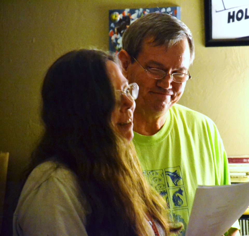 Vic went on first, and she moved the audience to laughter and tears and glowing good feeling. Then I went on, showing off an acrostic portrait of Patrick Stewart, a valentine to my Sweetheart, Denise, and certain other selected poems. Fellow poet Paul Dlouhy had offered harmonica accompaniment, and I took him up on it for my “The Love Song of Heinrich Chinaski, Deceased.” We had never rehearsed, and I suggested before we started that Paul come in with a cadence like walking. He did a jazz/street riffarama that was perfect for my words.