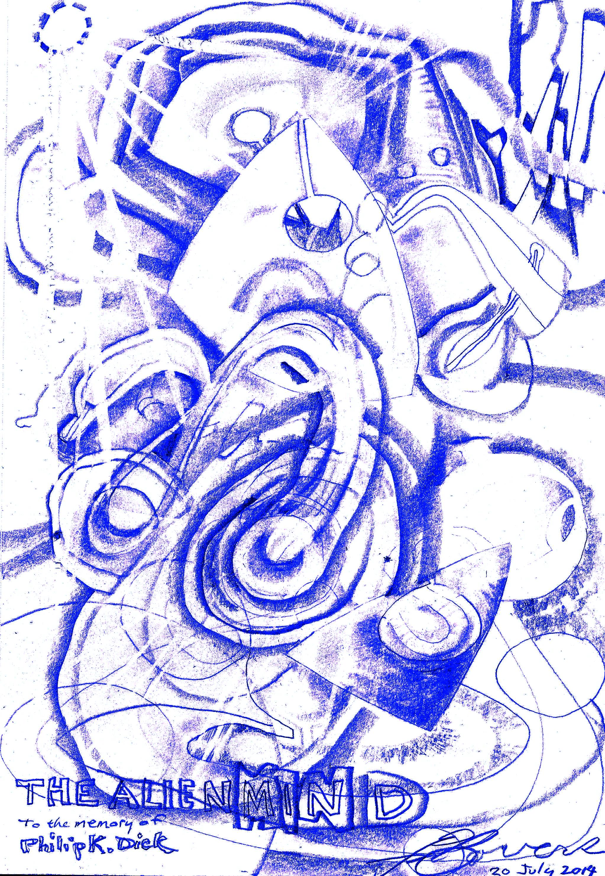 Sometimes you try to not be a human being. Science fiction writers have done it since H. G. Wells tried his hand. Philip K. Dick did it better than most. And he wrote a fine short-short story called “The Alien Mind,” which my image below does NOT illustrate. His story was a fine example of punishment fitting a crime, and cat lovers the world over, I am sure, have read it and loved it.