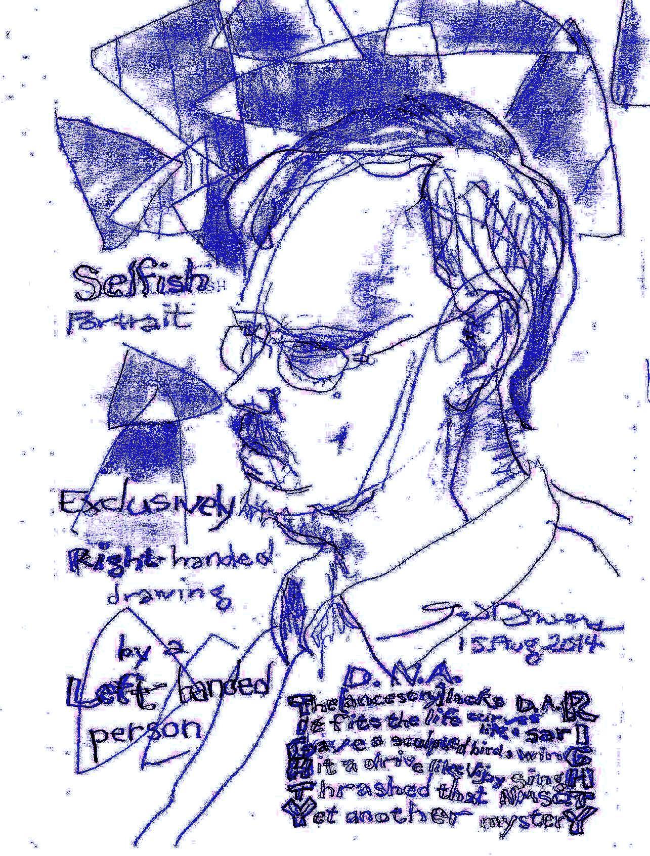 I’m left-handed, but every seven years or so I do a right-handed drawing. It builds character. It also gives one more empathy with people who have cerebral palsy or Parkinson’s or any other disorder that countermands a brain’s instructions to the body.