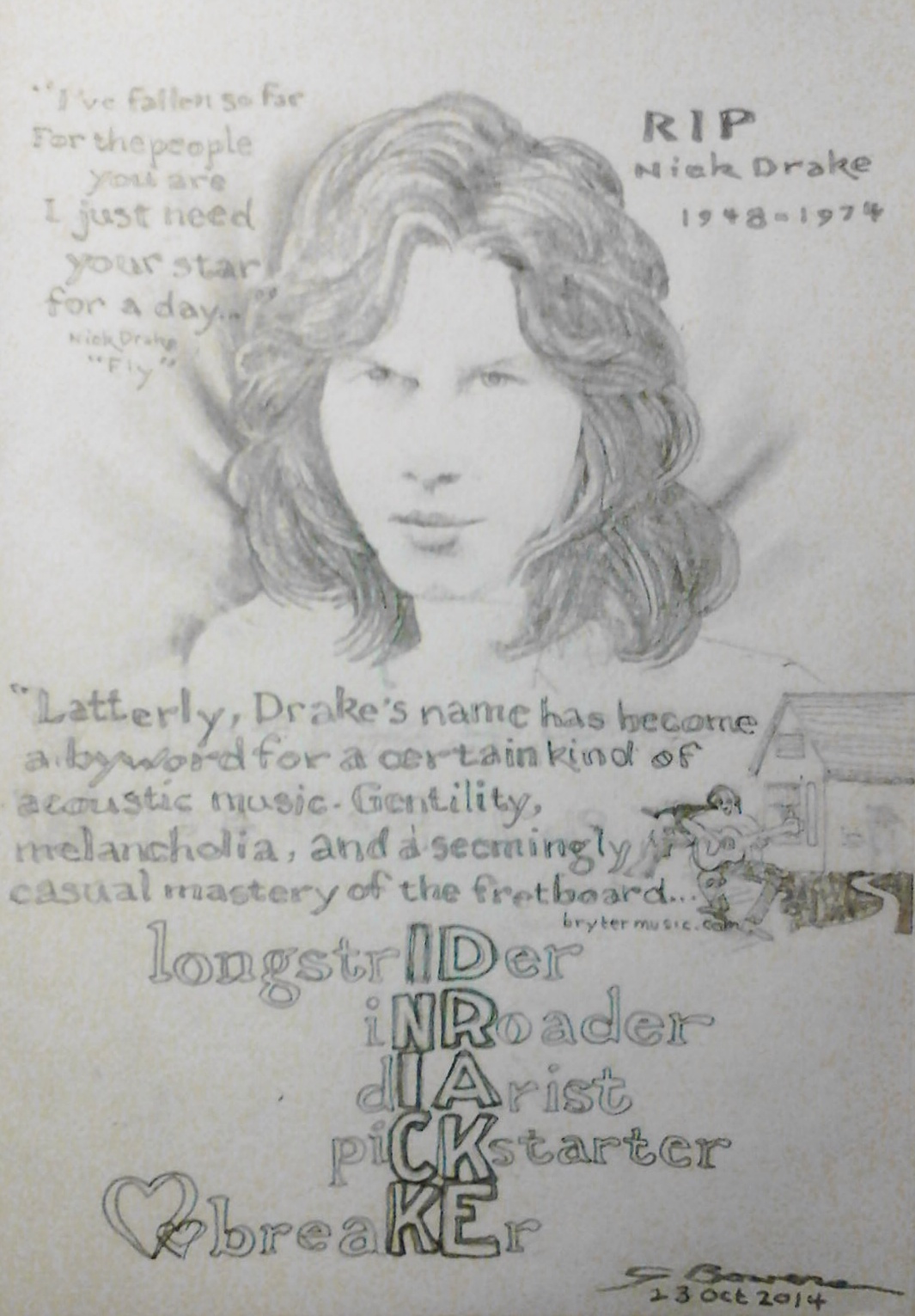 Here is the last of my “Notes from Abroad” pages, on the underappreciated and tragically elsewhere Nick Drake. It is not the first I’ve done of him, and it won’t be the last. See brytermusic.com (the official website of his estate) for more on this remarkable songwriter/musician.