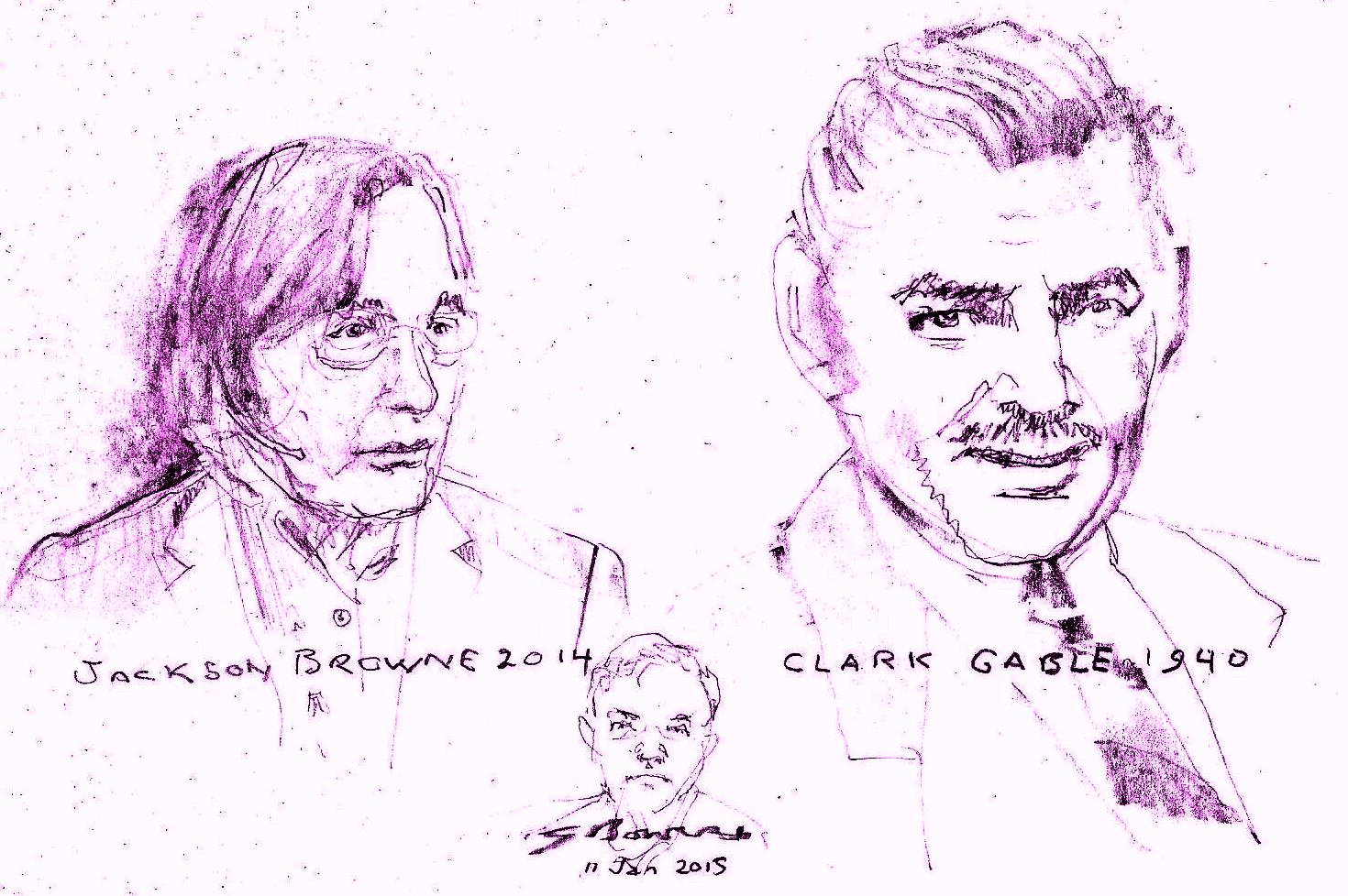 One thing Clark Gable and Jackson Browne have in common is the nonuse of their first names. Wikipedia says they were born Clyde Jackson Browne and William Clark Gable. Another thing they had in common was their alleged scandalous involvement with movie stars. Mr. Browne was with Daryl Hannah and Mr. Gable was with Loretta Young. Ms. Hannah has alleged that Browne physically abused her; Ms. Young alleged that Mr. Gable fathered her child. One story has been discredited; one has not.