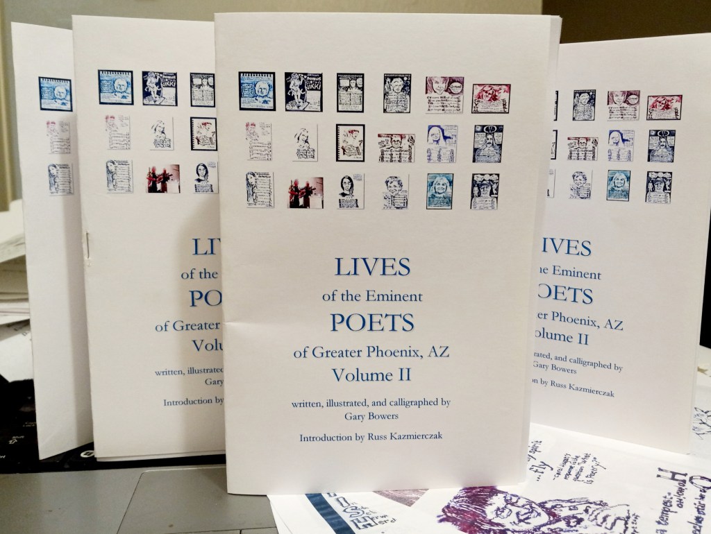 In 2010 I gathered the portraits I had done of outstanding local poets and put them into a chapbook which I called LIVES of the Eminent Poets of Greater Phoenix, AZ, Vol I. I did a print run of 50 copies, and some time later I was the MC of a special event celebrating my new publication, and many of the poets in my book came and performed. My objective was to showcase them because I felt they were underappreciated, and I think I fulfilled my intention.