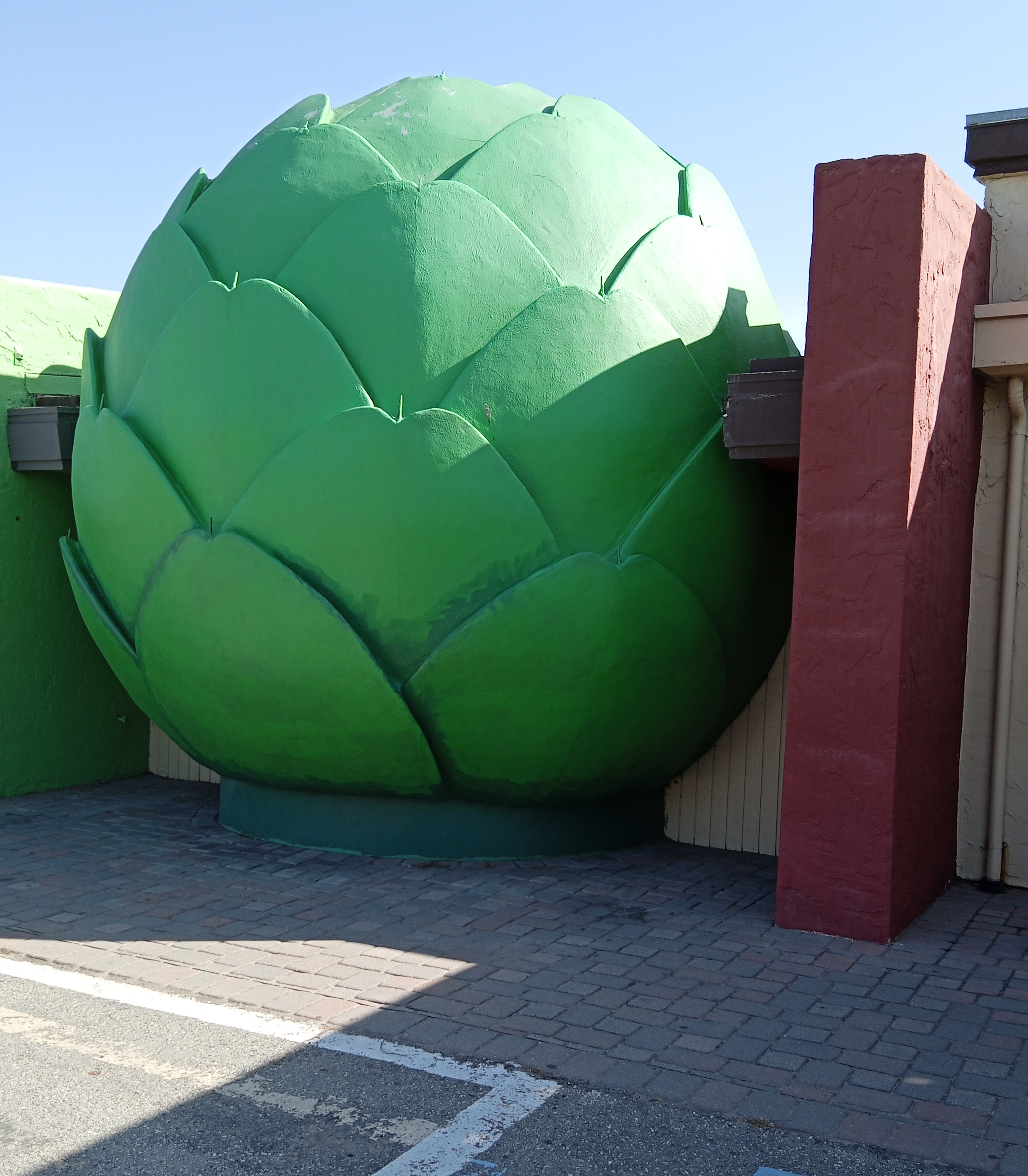 Yesterday I arrived in Castroville and spent the night at the Coastal Inn on Merritt Street. And this morning I ate a Castroville Scramble at the Fabolous Giant Artichoke Restaurant. Now I’m “scrambling” to post this, pack up, and head north. Checkout time is in eight minutes!!