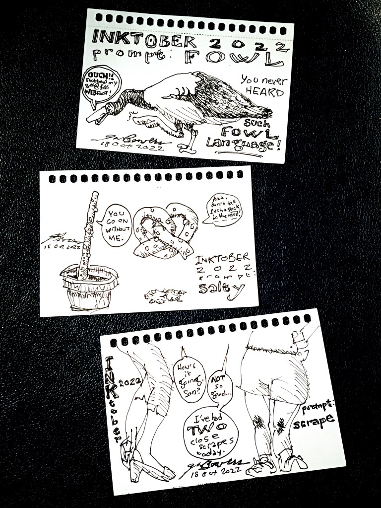 Inktober 2022 Threefer: Fowl, Salty, Scrape