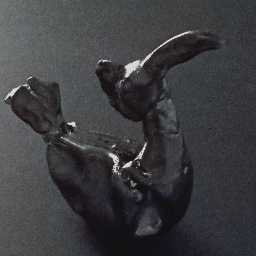 the brave gunmetal-glazed bird // this bird began as an intangible idea of defiance / and then whirled around as clay on a potter’s wheel /her vase shape changed with the slice of a needle tool and the folding-in of her body / with sculpted neck and vestigial wings and tail feathers added / and her head formed of pressure of clay against thumb / the blunt end of the needle tool making eyepits / her ungainly beak a folded rhombus of clay slip&scored to her head / and her head slip&scored to her neck / and tilted back so she could give her wild eyes / to heaven