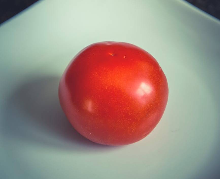 place a tomato stem-navel side down/cock the elbow of your slicing arm/pile-drive the tomato through the blades into your catching hand/inspect and discard unsuitable slices while conveying the tomato to the tray/arrange the tomato in the tray and quicklikeabunny take another tomato from the cambro/and do that loopy set of motions over and over seventeen more times/till you have a full tray/adding the step of making a half-tomato top layer with the last six tomatoes