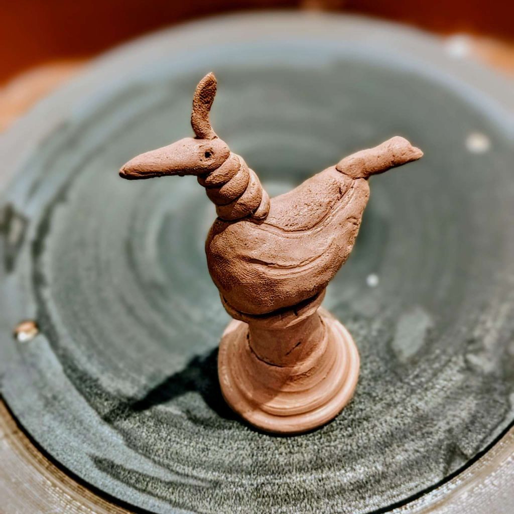 Today I sculpted a chess-piece perched bird, a pawn, the pawn that remembers Emily Dickinson’s description of Hope as “the thing with feathers.” And if my pawn of Hope makes her transition to the other end of the chessboard, she may transform,