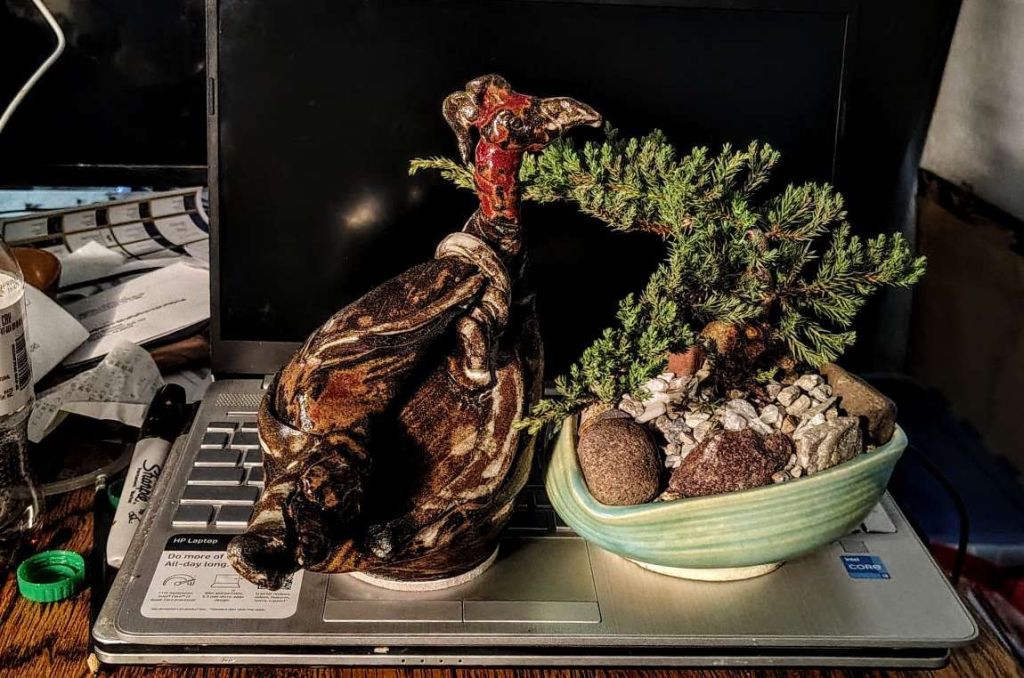January 26, 2026Uncategorized Leave a comment Bonsai and Bird Bonsai and Bird The Bonsai embraces The Bird. As eternal A moment as this Must not go Unpreserved. Share this: Share on X (Opens in new window) X Share on Facebook (Opens in new window) Facebook Like Loading... Related Bonsaiceramic sculptureeternityGary Bowerspreservation