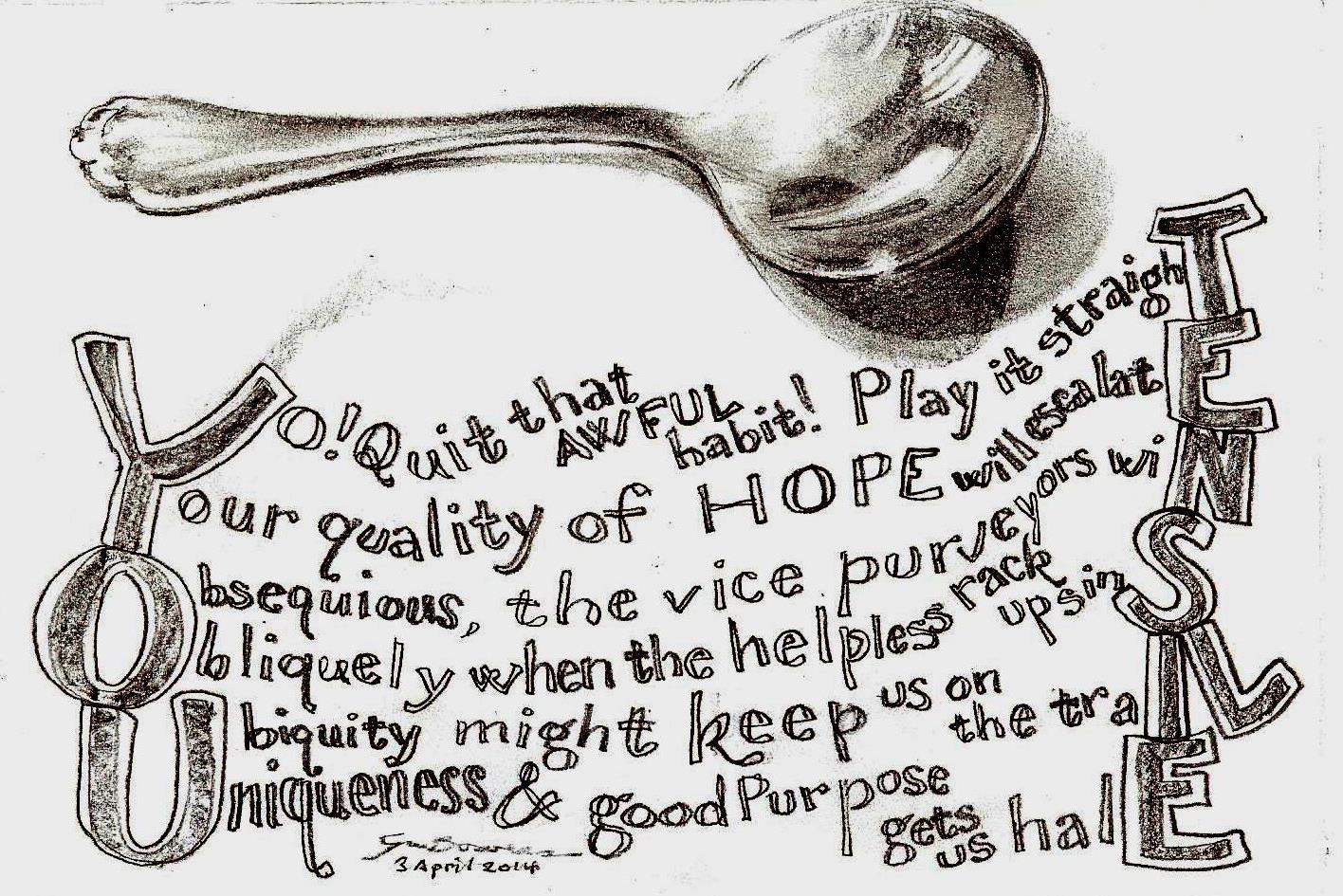 But the demonic imp with whom I wrestle,/The at-risk factor that will do me in if I let it,/The deadly Wanna that is my direst character flaw,/Is the glittery temptress, Mademoiselle Chance.