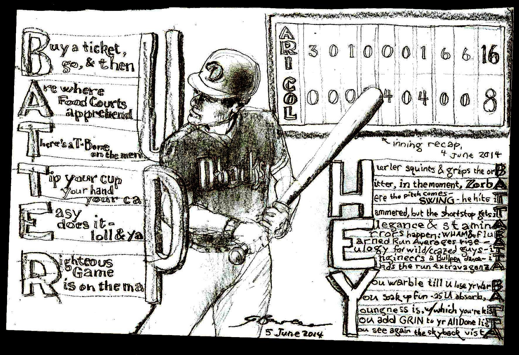 and quite near the bat-gripping hand