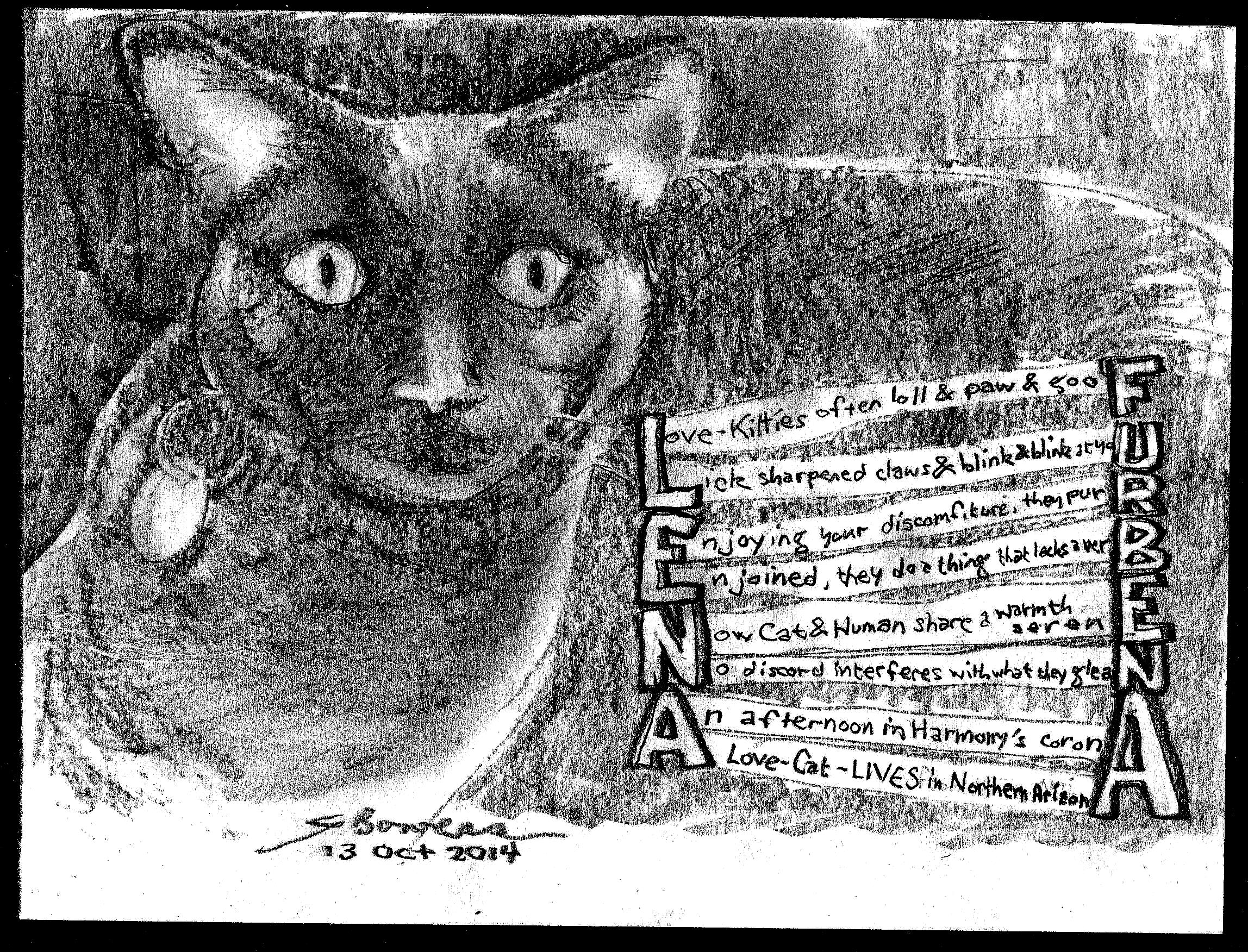 Recently I read T. S. Eliot’s “The Waste Land.” I don’t pretend to fully understand it. There are helpful footnotes and biographical material in the edition I own (Penguin Classic, The Waste Land and other Poems, edited and with an introduction and notes by Frank Kermode, purchased at the amazing The Book House in St. Louis, Missouri, Eliot’s home town) but the sense of Eliot’s focus choices still eludes me. I see and touch the parts of his poetic elephant without getting a good, wide-angled, aerial-photography look at the elephant itself. Time, research and thought will take care of that, I trust. Meanwhile I’m in the kitchen, a bit sleep-befuddled, under a slight Eliot influence. As I start chopping the potato I think of how much better it would be to say “There’s more than one way to chop a potato” than “There’s more than one way to skin a cat.” Those poor cats!!! (In St. Louis I spent several days in the company of my cartoonist/poet friend Russ Kazmierczak and his significant other, the cat-adoring Missy Pruitt. I like cats myself, but Missy has devoted a portion of her life-energy to the welfare of cats on a scale beyond most of us.) (If T. S. Eliot had never existed, the play Cats would never have existed either, and Paul Newman would never have gotten up in his seat in the audience of “The Late Show with Letterman” and demanded, “Where the Hell are THE SINGING CATS??!” Thoughts don’t come out of nowhere.) (Russ K is a huge Letterman fan. I’m hoping this passage will bring him a smile. Russ is a huge Missy Pruitt fan too. If Eliot were writing this, he would make less sense but be much more eloquent.)