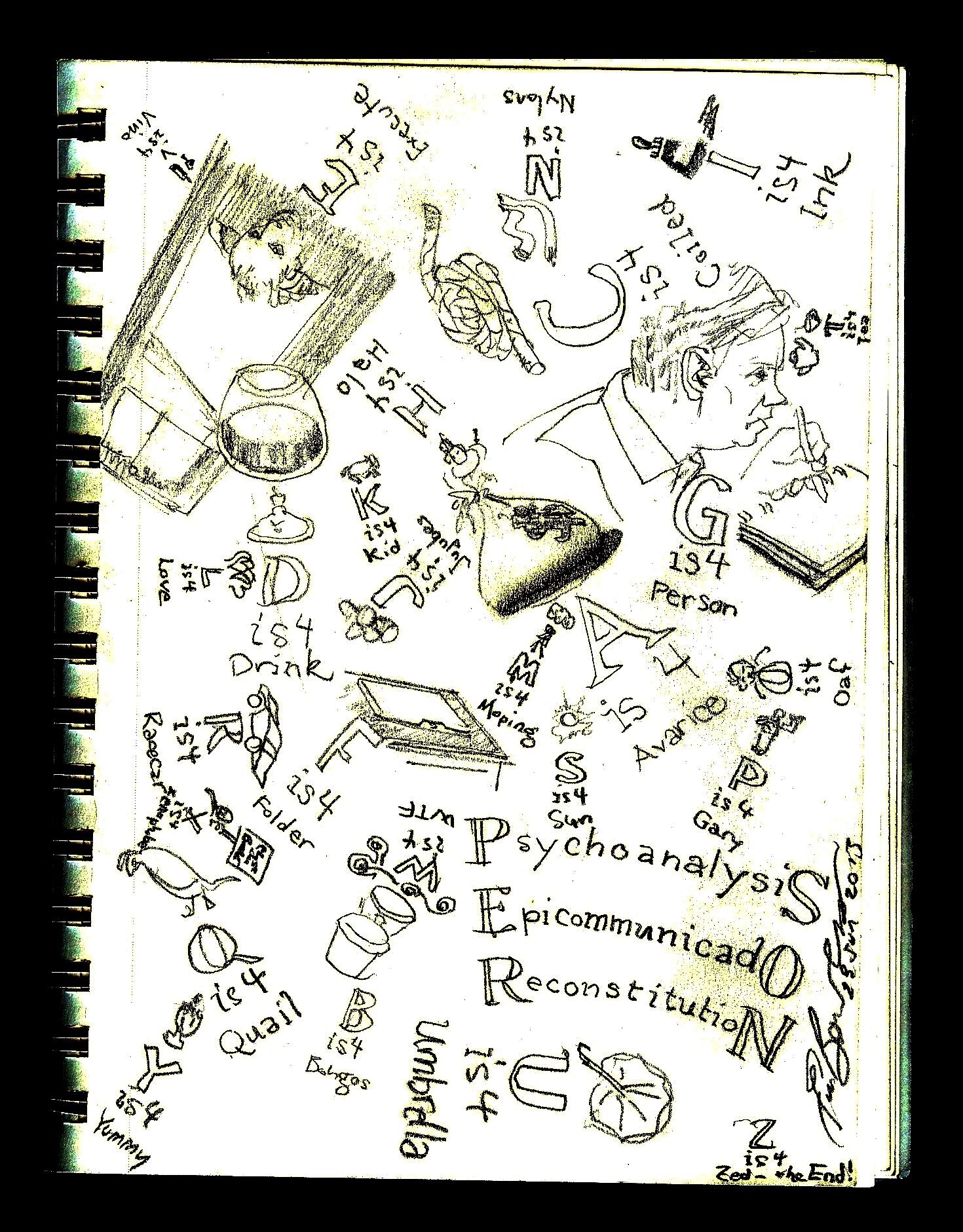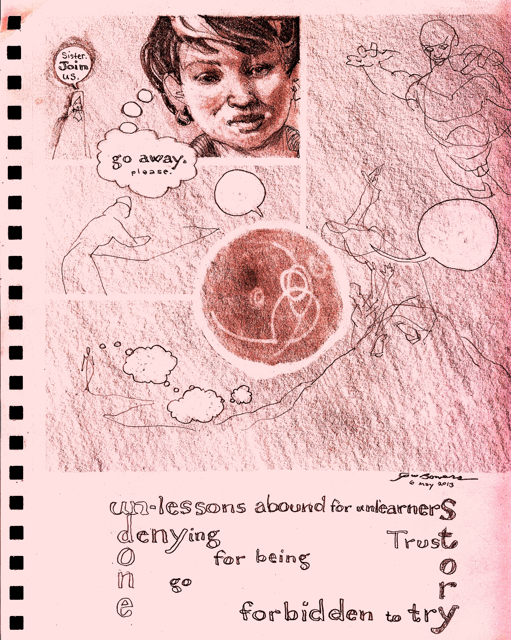 Done Thursday, August 15, 2019. Wite Conté crayon on black paper. 9″ x 12″.
