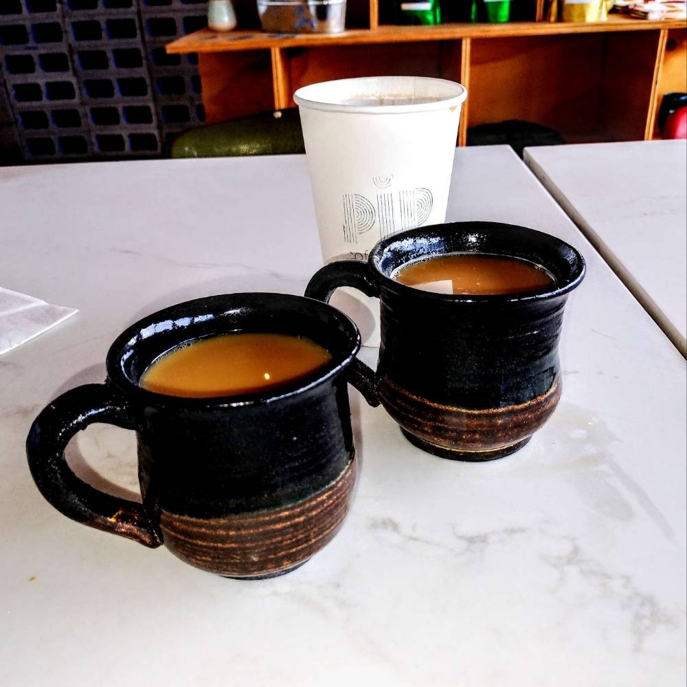 Mugs and coffee made on location at PIP Coffee & Clay, Phoenix, Arizona