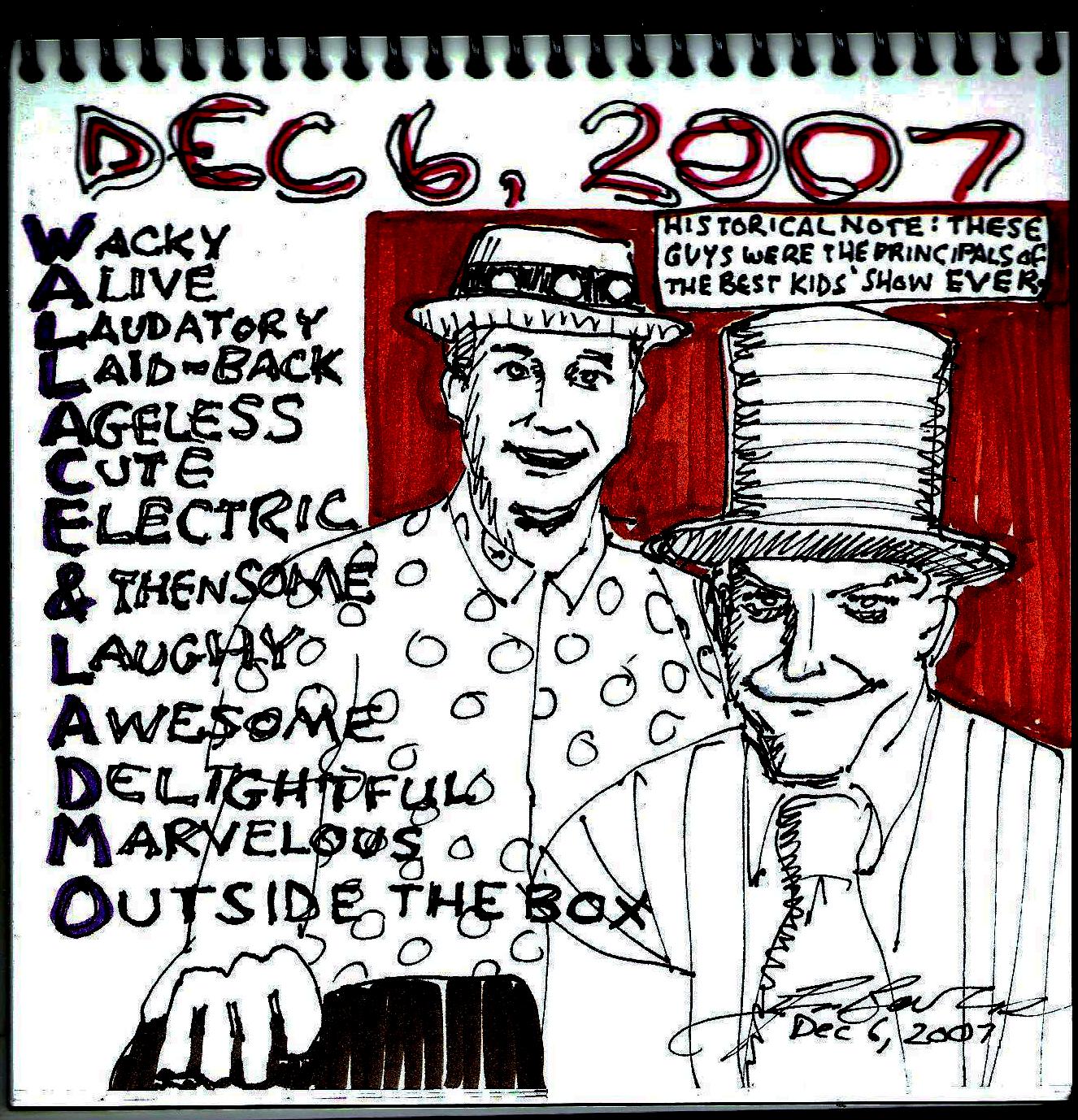 After Wallace, Ladmo and Gerald-et-al folded up their TV tent and transitioned to legend, Mr. McMahon had–and has–an enormously successful career as pitchman (examples: HBO, Ottawa University, Lennar Homes) and radio (KOOL 94.5) and TV-show host (Arizona TV). His body of work is enormous and impactive. One impact is on me, who at 60 years of age still have enough kid in my heart to think of Mr. McMahon’s endlessly inventive shenanigans and smile–and chuckle–and laugh out loud. So I mustered all the wherewithal I had to do this page of him.