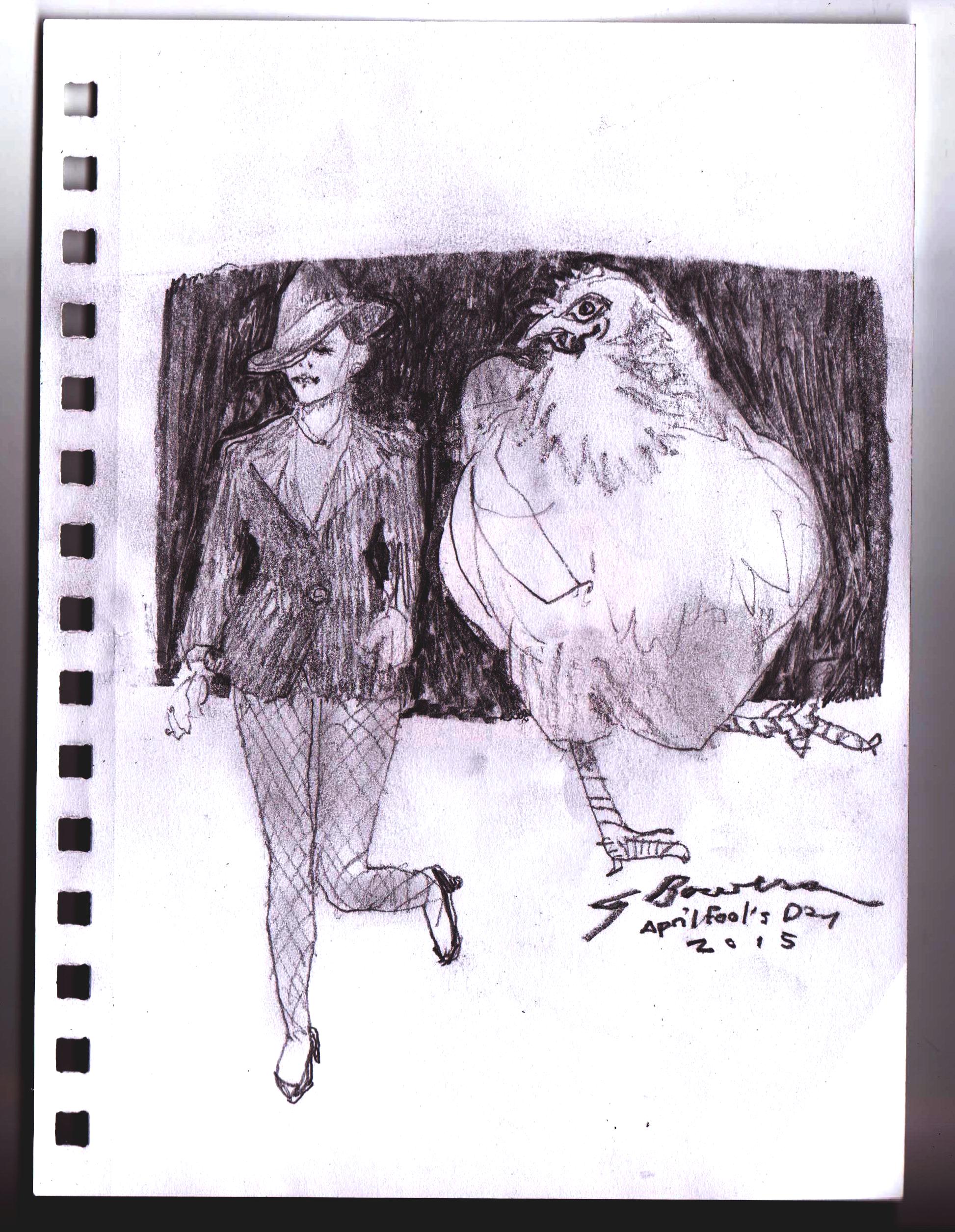 3. The illustrative sketch was done on a piece of cut-up scratch paper during my shift at the Village Gallery today. That is why there is faded reversed lettering on the image; it is from the other side of the paper.