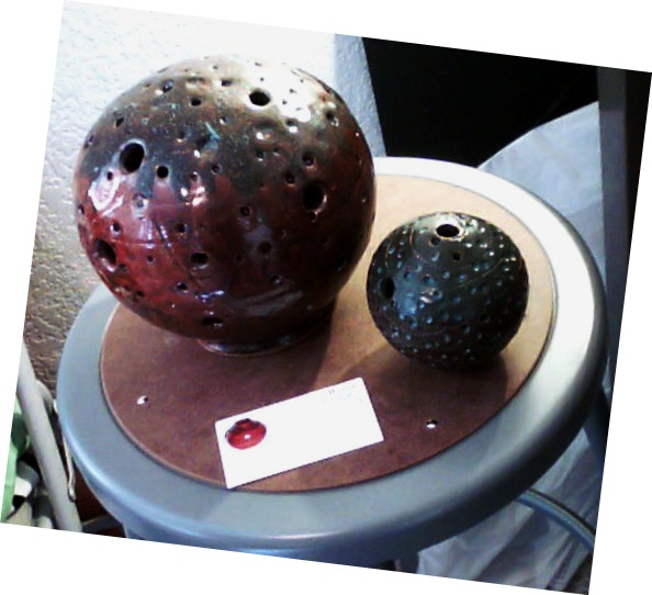 Faithful readers will recall “Li’l Universe,” a clay sculpture I offered for delectation about a half dozen posts ago. The faithfullest reader of all, Monsieur Michel Lamontagne of Canada, whimsically and delightfully created an image of an alien creature “misusing” Li’l Universe at a bowling alley. So this post is dedicated to him.