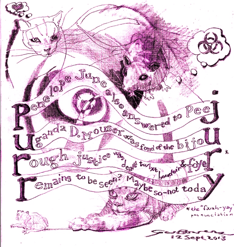 My friend and fellow blogger Michel Lamontagne once praised my predacious-cat drawings, and so I hope he likes this one; it might not have happened but for his kindly comment.