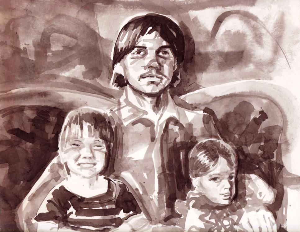 an uncle and his nieces sit