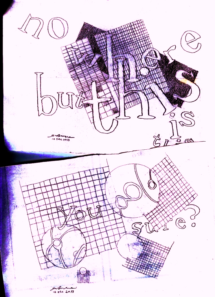 Here is an image of two drawings that, overlapping, pose a philosophical question. What are the boundaries of Where? And what’s This, and is This subject to change without notice? When then, does This become That and then subside back into This?