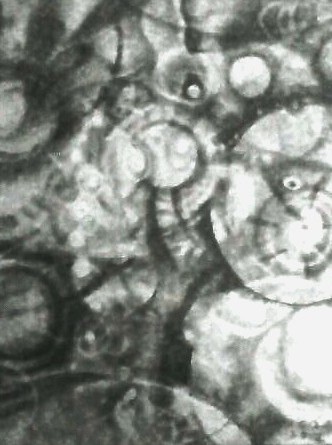 Minutes later, my music-loving, fellow 2D artist friend Myra Smith responded: “I thought inner workings of a human ear,” and my instant, flip response was “Huh?” But even as I was being a smart-aleck, that potent phrase “inner workings” resonated, echoing between my human ears. I loved it as a title. And I loved it as a quick, Cut The Gordian Knot solution to the work in progress: superimpose a face on this swirly stuff, tweak the drawing a little, and call it a day.